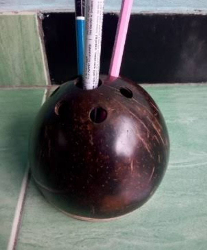 10.Tempat pensil dari batok kelapa sudah jadi.